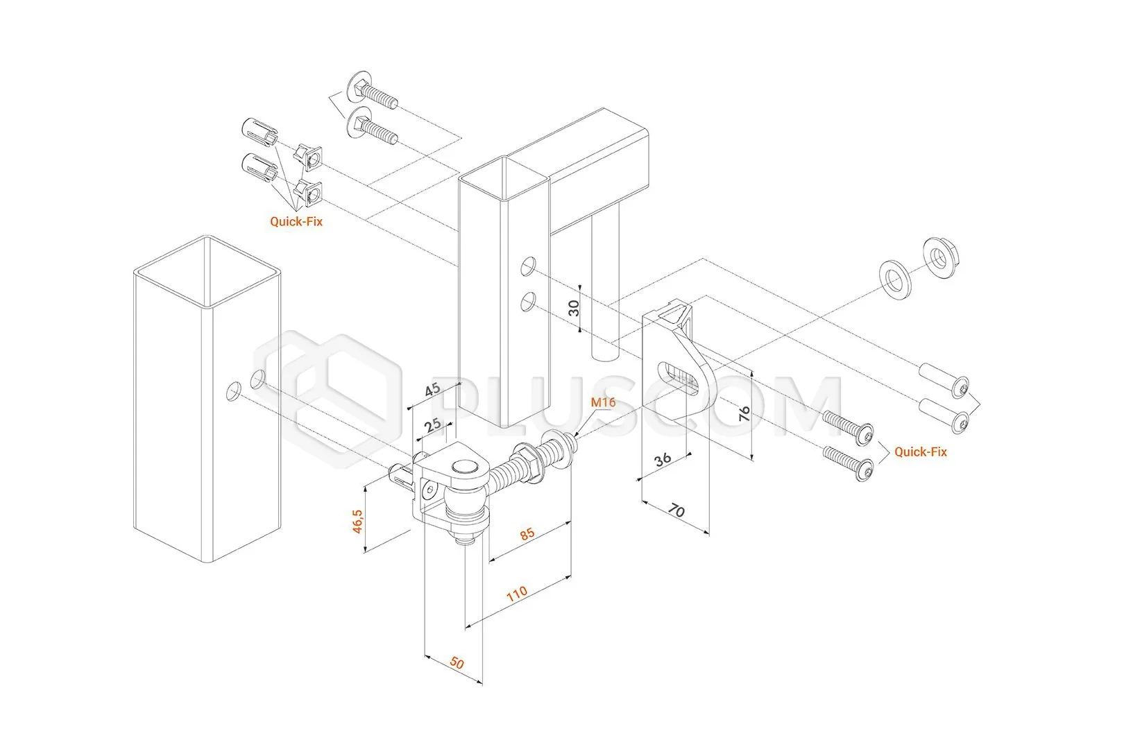 Le système de montage Quick-Fix est une solution innovante utilisée dans la charnière BoltonHD, qui permet un montage rapide et simple sans soudure. Grâce à cette technologie, l'utilisateur peut fixer la charnière à l'aide de vis spéciales qui maintiennent fermement les éléments tout en permettant de régler leur position.