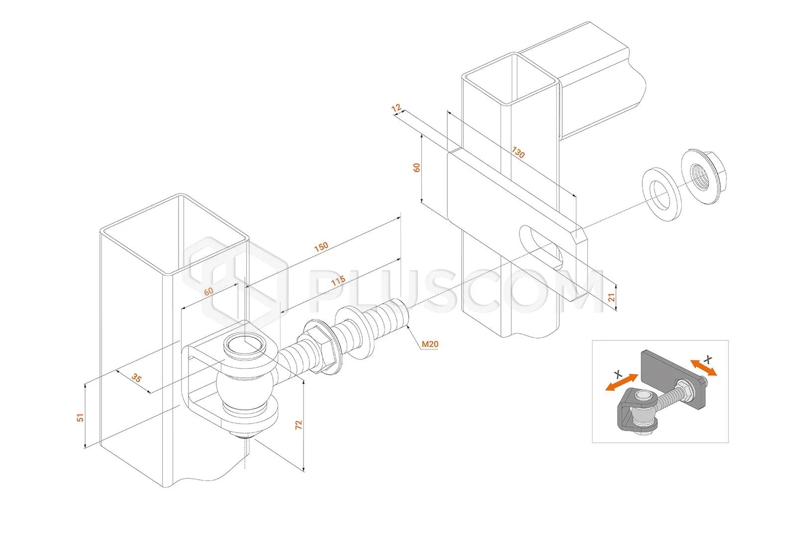 La charnière pour portail M20 est un élément de construction avancé qui garantit un fonctionnement fiable et précis des portails.