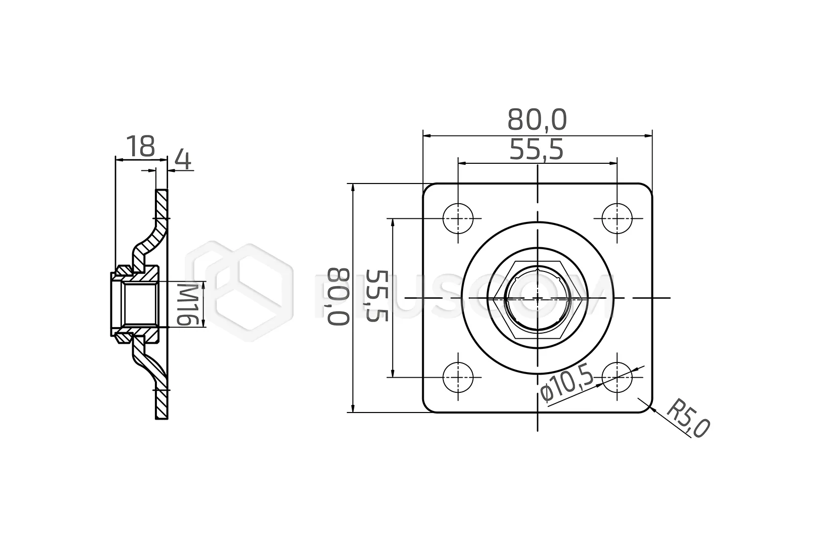 PSG N61.P116.4UR Plaque pour charnière réglable M16 avec plaque