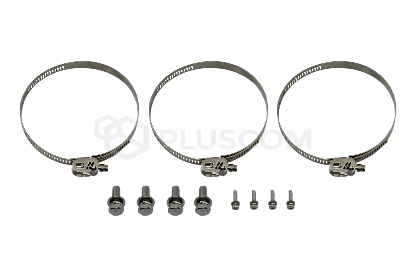 Uchwyt do zastosowań zewnętrznych oraz wewnętrznych. Płyta montażowa została wykonana ze stopu aluminium, obejmy zostały ze stali nierdzewnej.