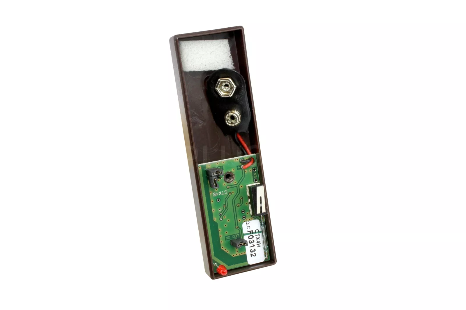 È alimentato da una batteria alcalina da 9V. con la quale il trasmettitore può funzionare fino a 1 anno.