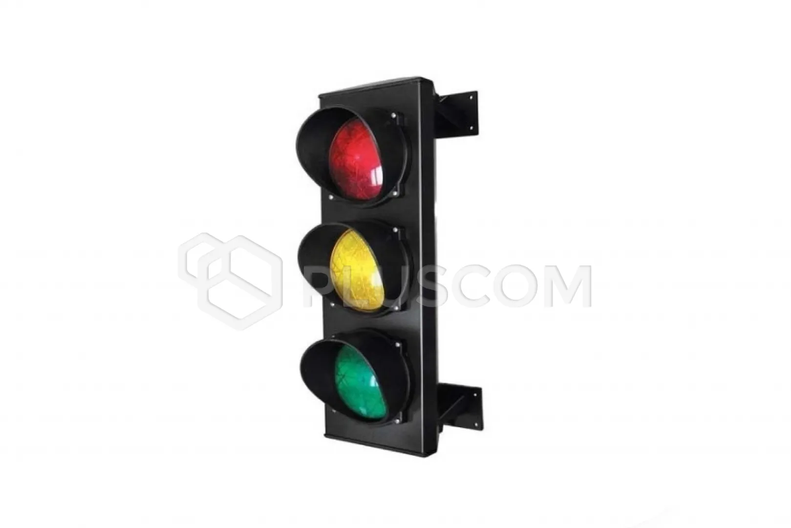 Semaforo luminoso in alluminio estruso, lente con diametro di 125 mm, lampada o LED, due supporti per il montaggio a parete con tasselli e viti.