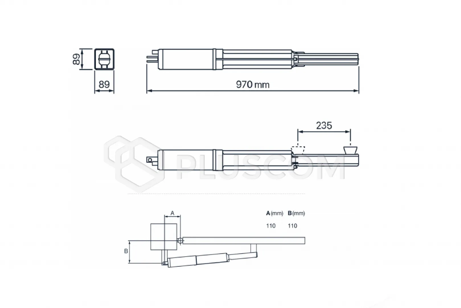 Servomotore oleodinamico HINDI 880 SPRINT 230V 1PH (0,18 kW / 0,25 HP) con blocco in chiusura e apertura per cancelli a battente fino a 400 kg e con lunghezza del battente fino a 2,3 m. Per uso intensivo.