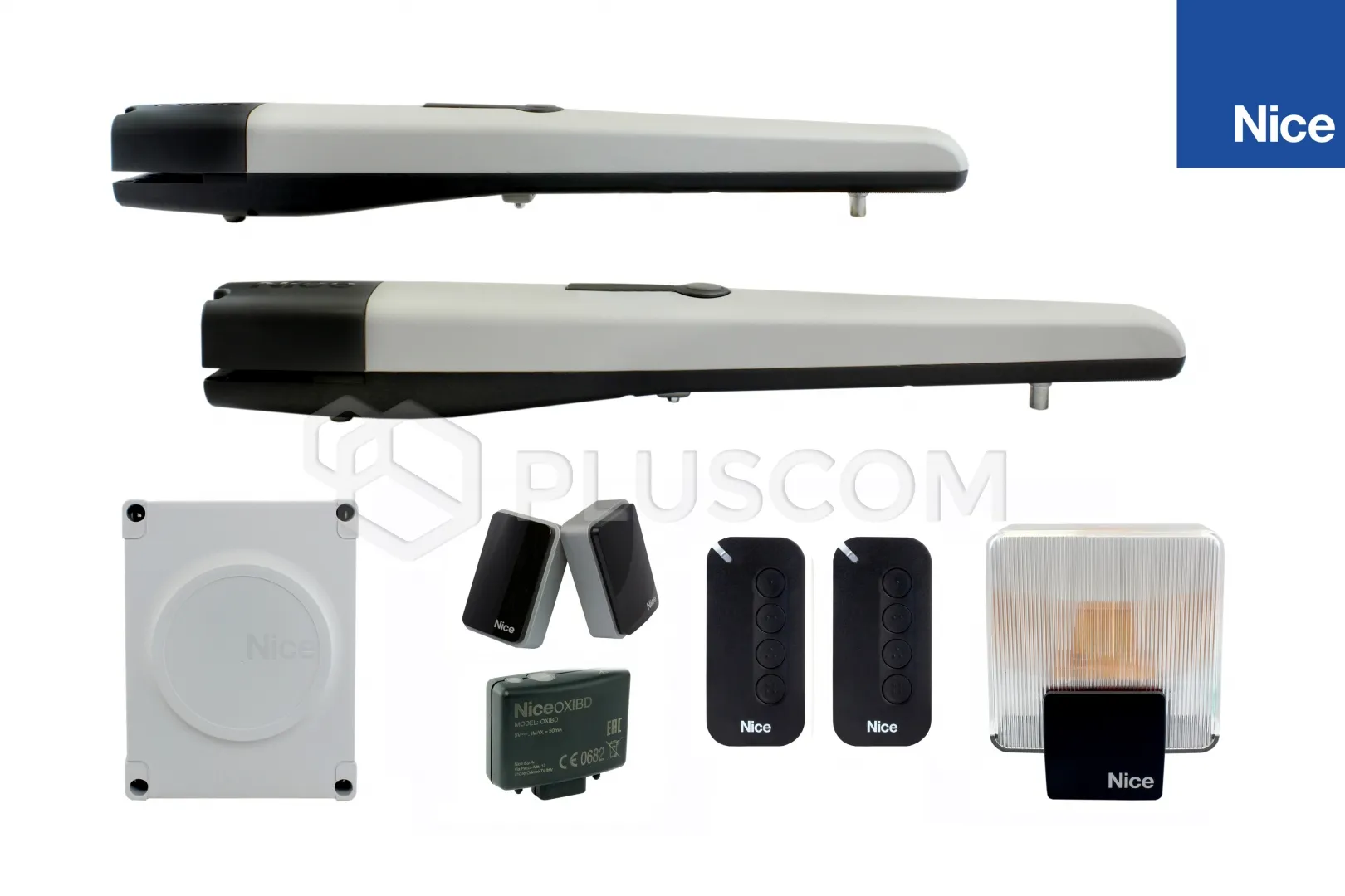 Nice TOONA4024BDKCE kit: 2 siłowniki TO4024, centrala sterująca MC824HR10, odbiornik OXIBD, 2 piloty MYGO4, fotokomórki EPMB, lampa ELDC