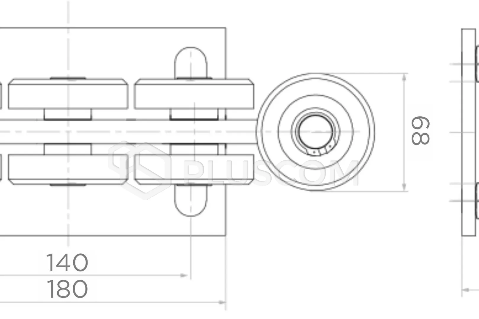 Carrello con 9 rulli in plastica. Carrello destinato a guide 80x80x5 mm.