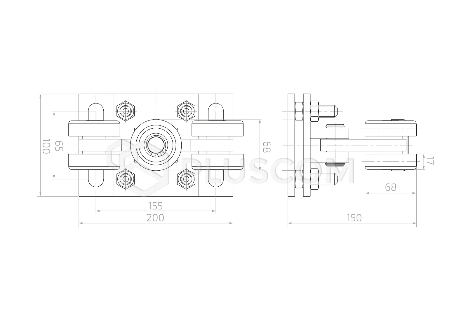 L'altezza del carrello è regolabile tramite viti. Il prodotto è adatto per guide 80x80x5 mm ed è zincato.