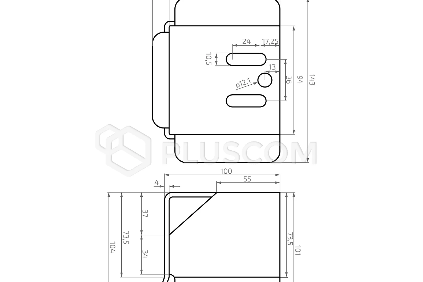 Sulla parete posteriore sono presenti due fori di montaggio e un paracolpi in gomma. Prodotto zincato.