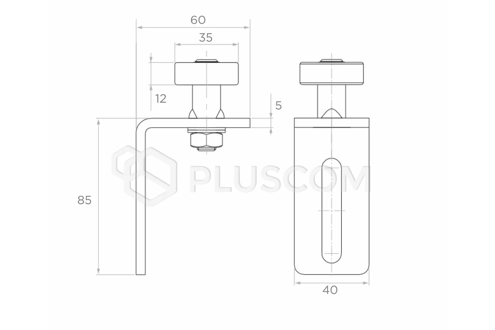 Rullo guida con diametro di 35 mm utilizzato per mantenere il binario (profilo a C) in posizione verticale durante la chiusura e l'apertura. Il rullo è realizzato in plastica ed è montato su un cuscinetto. In dotazione angolare di montaggio.