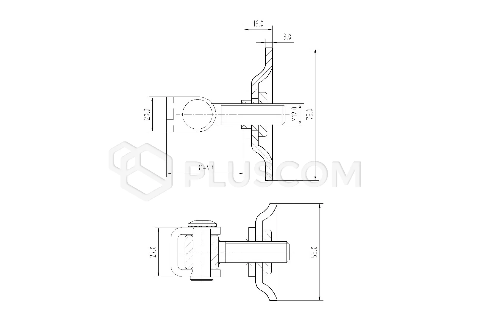 Cerniera regolabile in acciaio con vite filettata M12. Dispone di una piastra di montaggio con dimensioni 75x55 mm e spessore della lamiera 3 mm. L'uso di questa cerniera consente una regolazione semplice e rapida di cancelli o porte a battente dopo il montaggio, tramite un dado di regolazione.