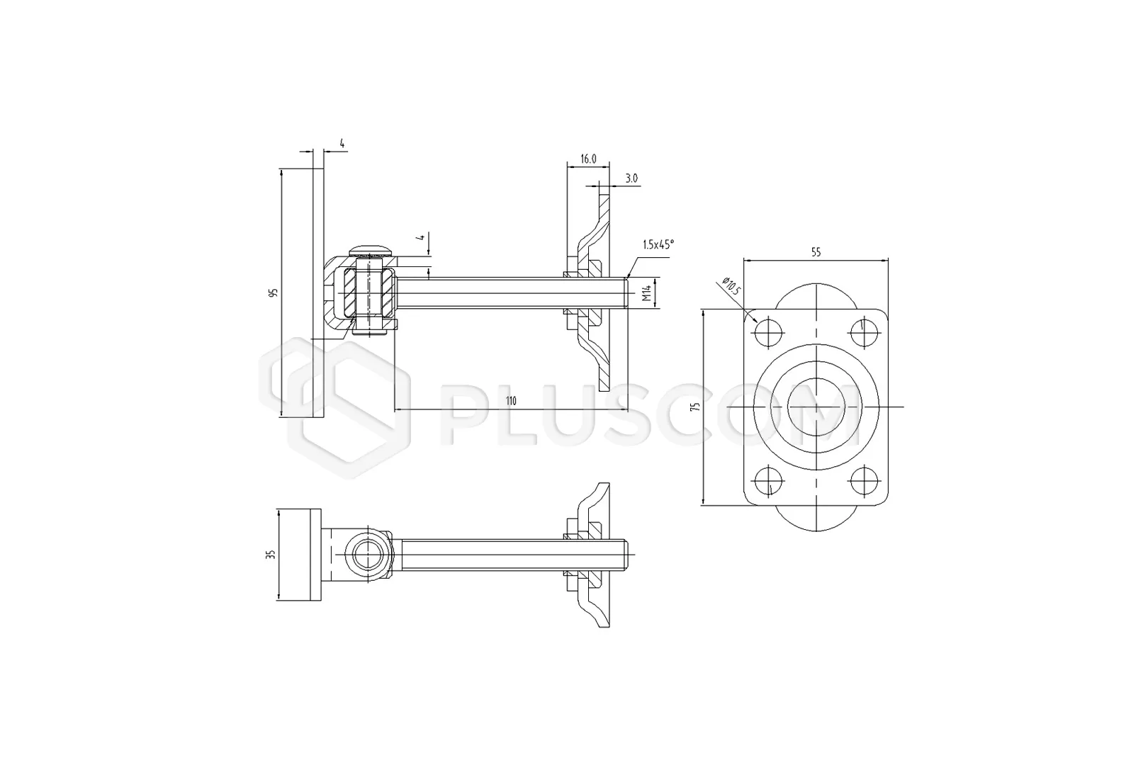 PSG 61.068.14 Cerniera regolabile M14 con placca 115x40 mm e piastra 75x55x3 mm