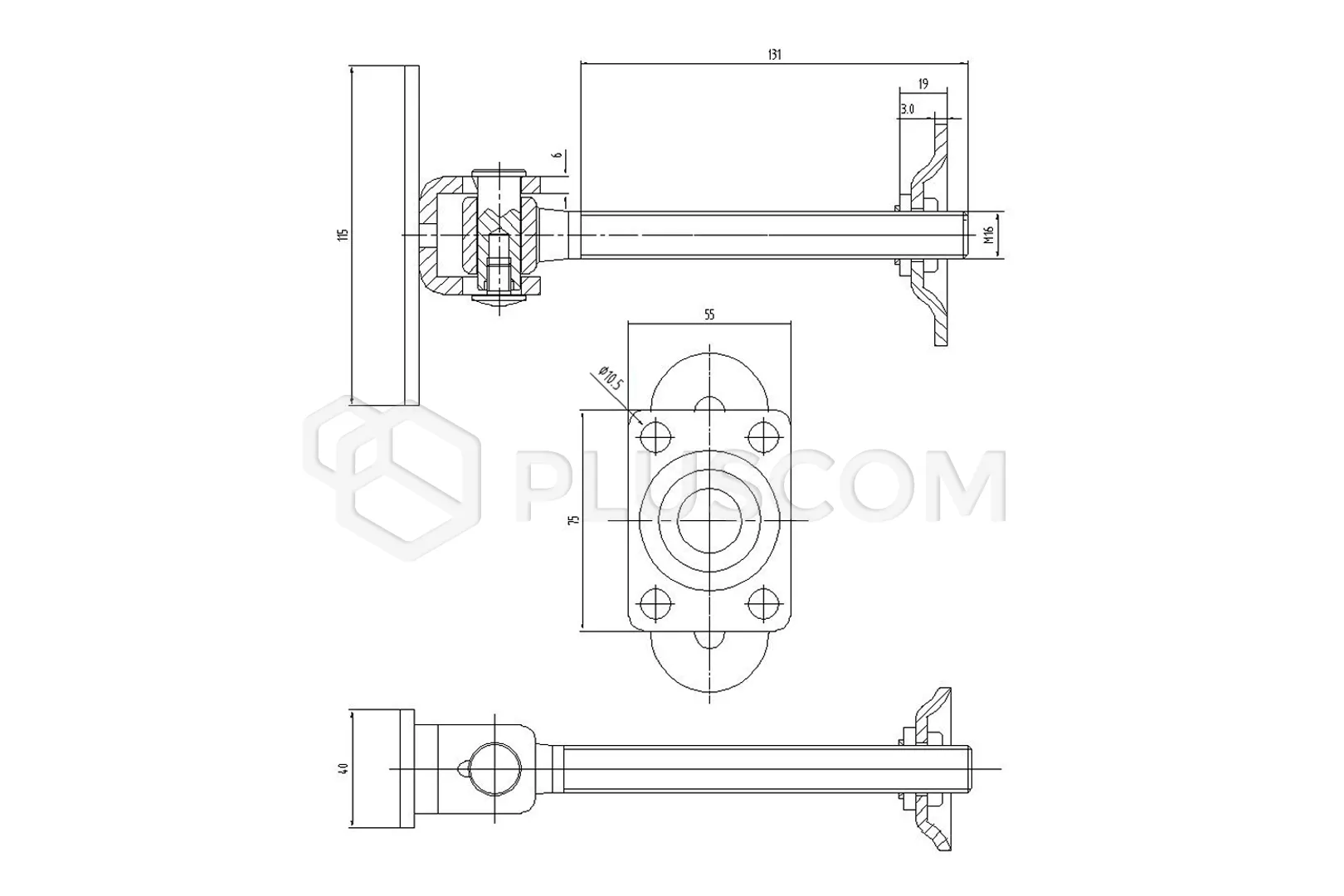 PSG 61.068.16.01 Cerniera regolabile M16 con placca 115x40 mm e piastra 75x55x3 mm
