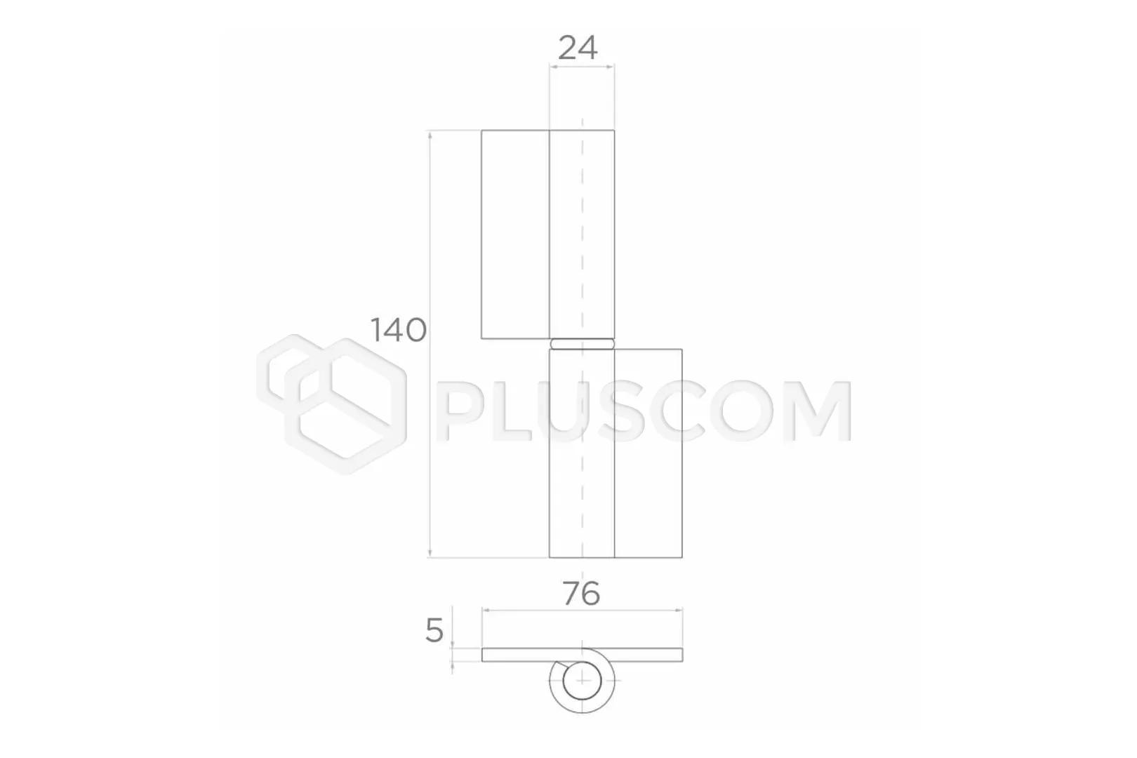 Cerniera tornita da saldare, destinata tra l'altro a per il montaggio di elementi di recinzione. Il montaggio richiede precisione: la cerniera viene saldata su due lati, ad esempio al montante e al cancello, formando un insieme integrale.