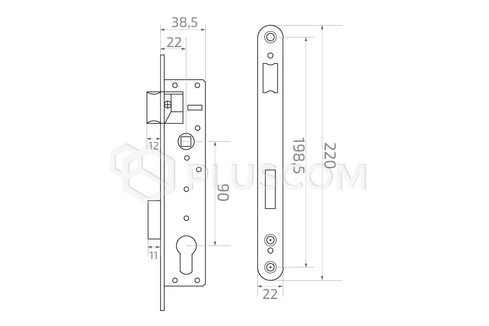 PSG 63.210.90M Serratura stretta con cilindro 90/22