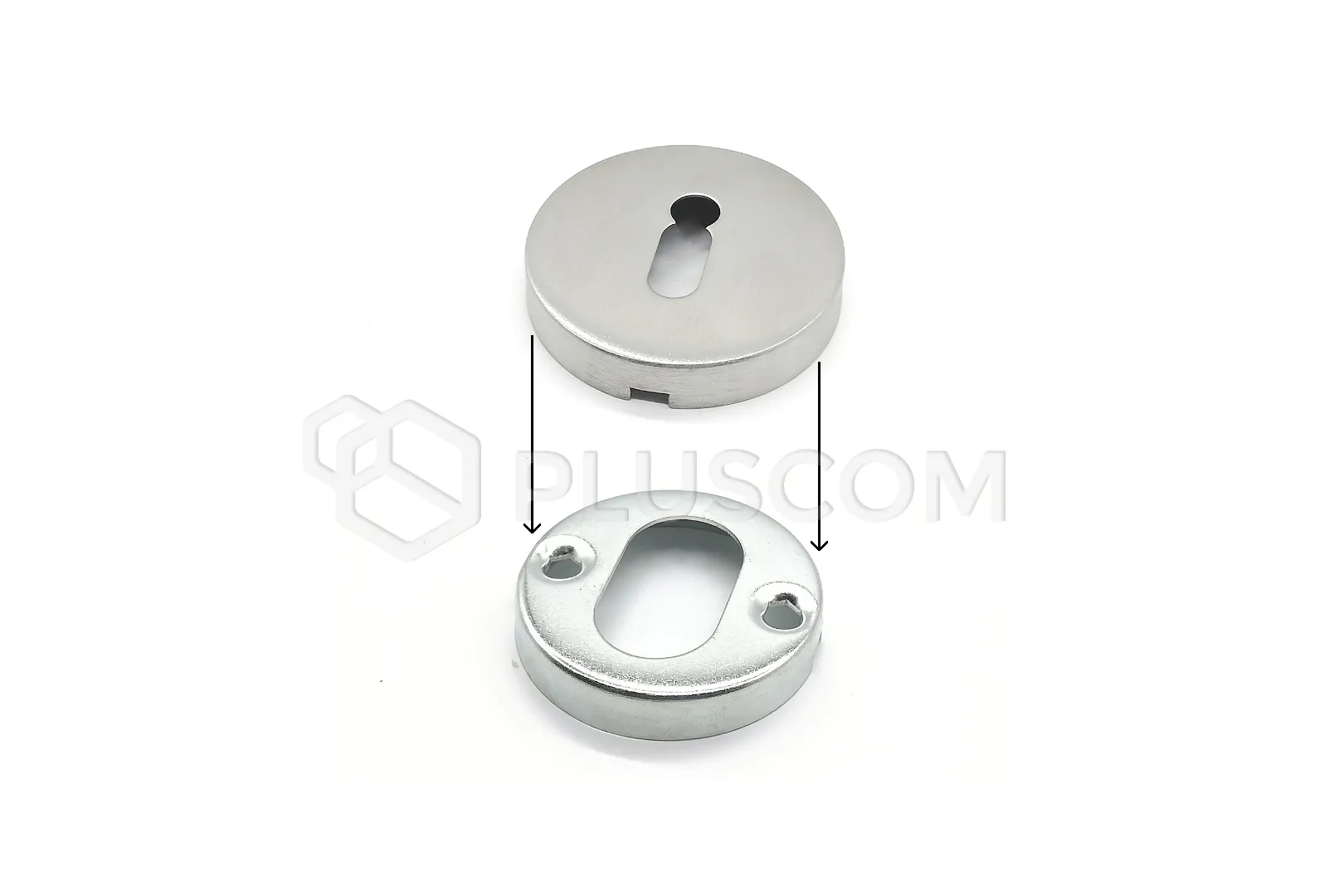 La targhetta rotonda, realizzata in acciaio inossidabile AISI 304 di alta qualità, completa la gamma di maniglie in acciaio inossidabile. È composta da un elemento di montaggio con due fori e da una mascherina esteticamente rifinita.