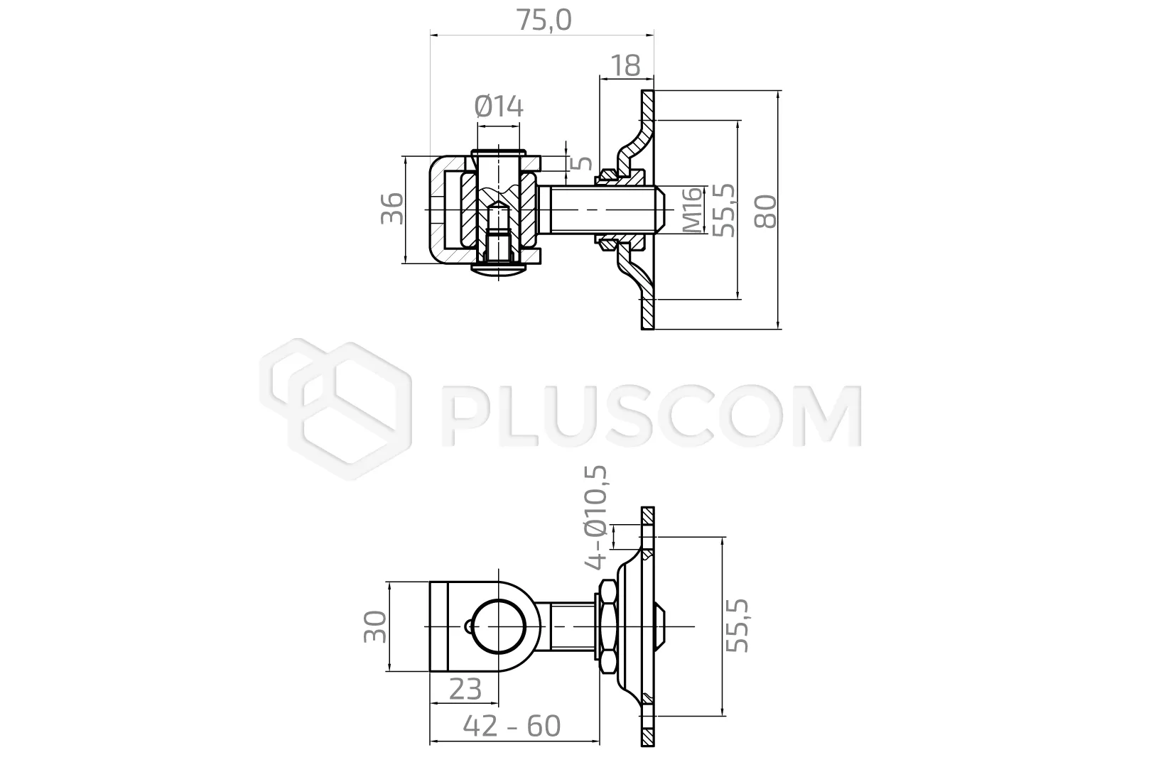 La cerniera regolabile M16, realizzata in acciaio inossidabile AISI304, è la soluzione ideale per il montaggio di cancelli a battente.