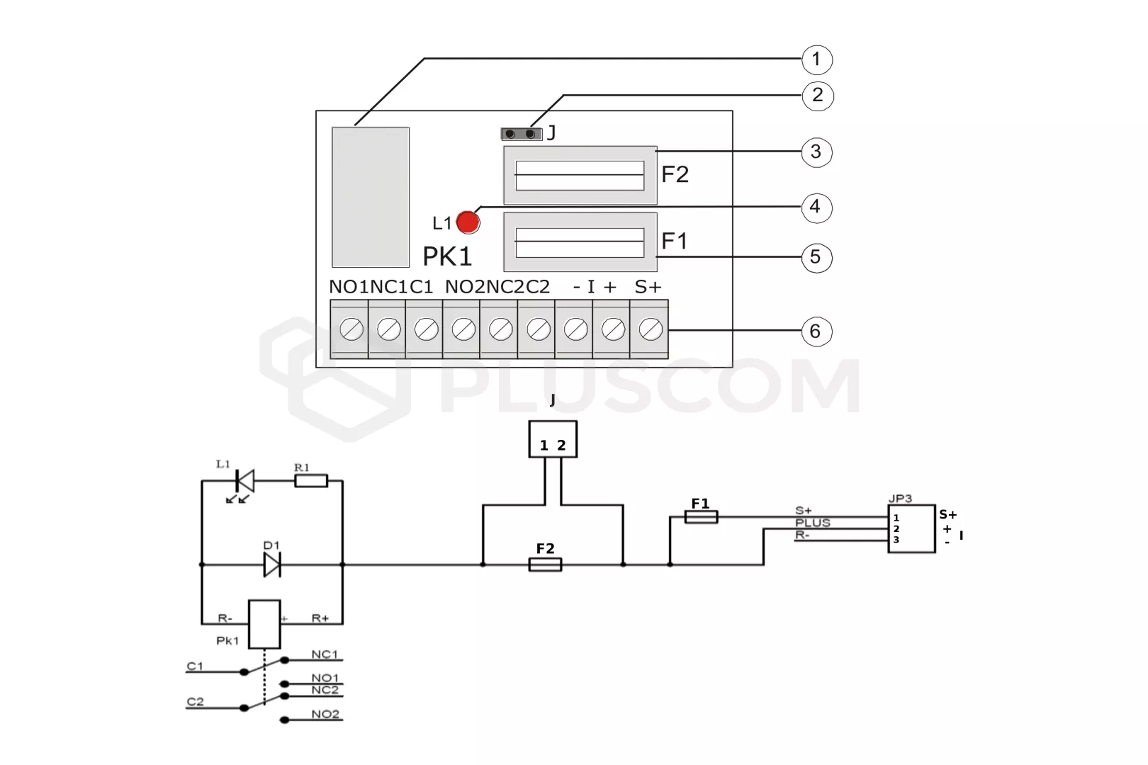 • F1 - 2A - zabezpiecza wyjście zasilania S(+)
