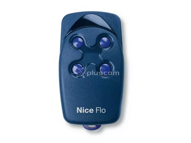 Sterowanie Flo: zasięg do 100 m z anteną ABFKIT/ABF w terenie otwartym. Niebieska obudowa i niebieskie przyciski to cecha rozpoznawcza. Kod ustawiany ręcznie za pomocą dziesięciu przełączników.