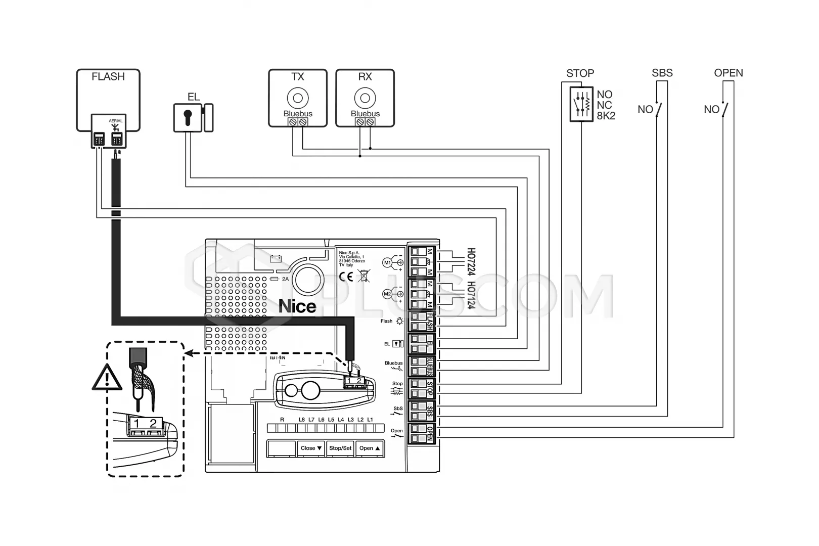 - 2x0,75mm2 podłączenie lampy BLUEBUS