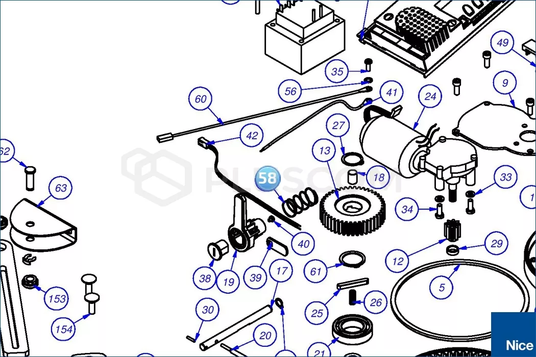 Nice MO-2027.2640 Sprężyna dźwigni wysprzęglania HYKE na schemacie Nice Hyke 7024HS R10