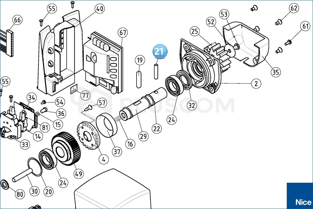Nice PMCS8.4630 Kołek napędu koła zęb. ROBUS/ROX na schemacie Nice Robo 1000 (RO1000)