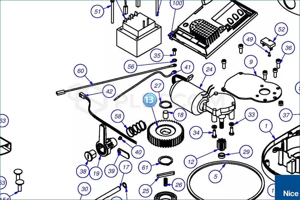 / Części zamienne do napędów / Części serwisowe Nice / Części do bram skrzydłowych Nice / Nice Hyke 7024 (HK7024) / Nice PMD1913.4610 Koło zębate pośrednie HYKE