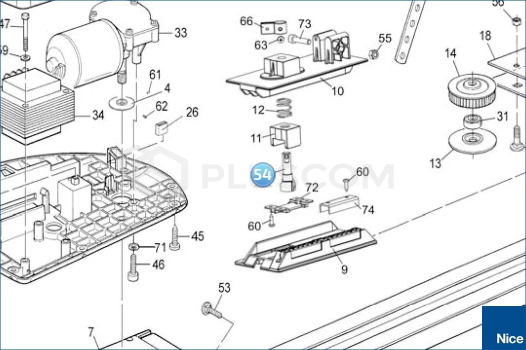 Nice PPD1581.4540 Wałek obrotowy wysprzęglania (SNA11/SNA30) SPIN na schemacie Nice Spin 6031 (SN6031)