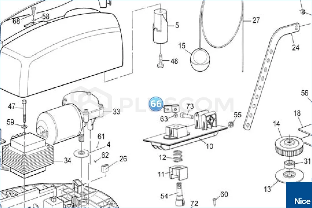 Nice PPD1583.4540 Dźwigienka obrotowego trzpienia wysprzęglenia (SNA11/SNA30) SPIN na schemacie Nice Spin 23 (SPIN23)