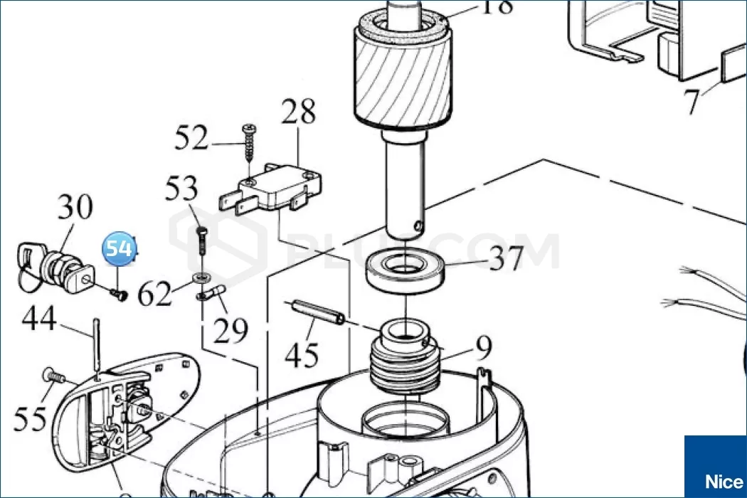 Nice V4X5.5102 Śruba mocująca zapadkę zamka THOR na schemacie Nice Pluto 4000 (PL4000)