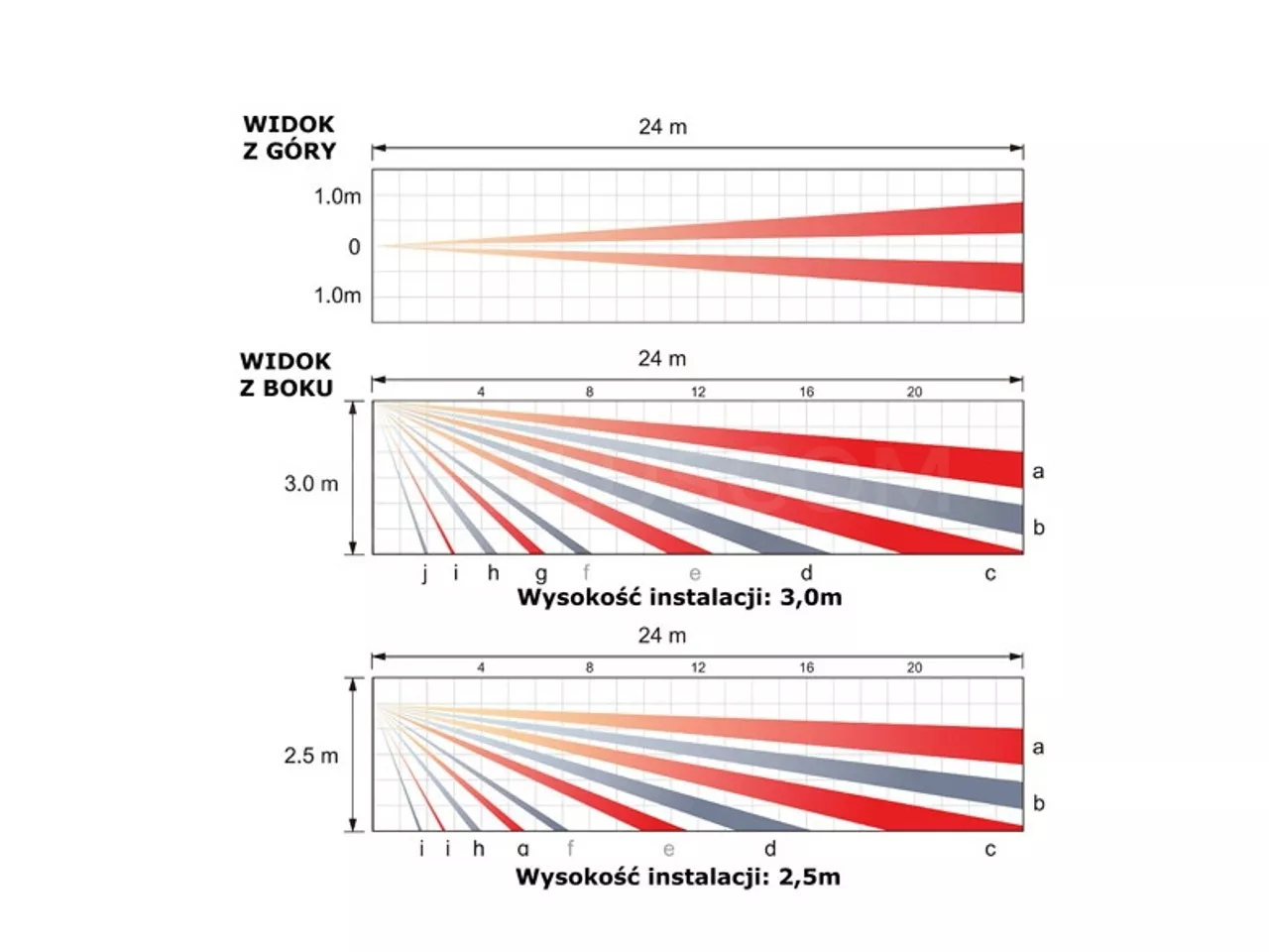 • model HX-80NRAM(C) posiada charakterystykę kurtynową o zasięgu 24m.