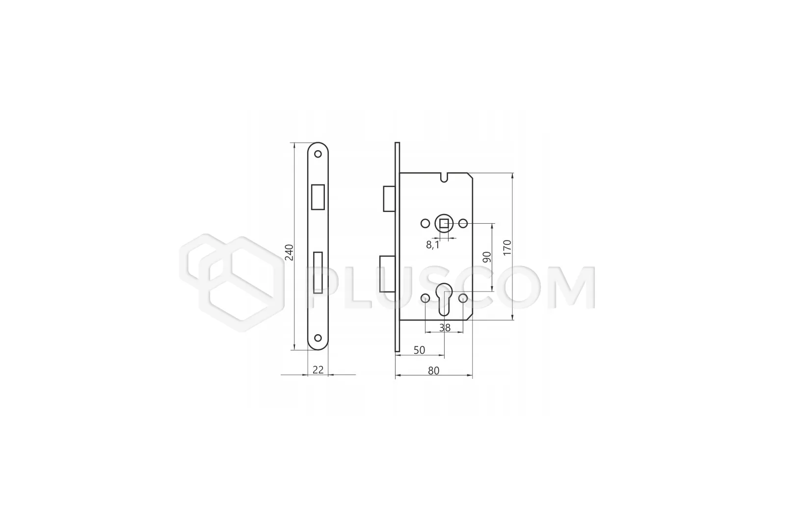 - Zamek dostarczany jest bez zaczepu do futryny oraz elementów montażowych,