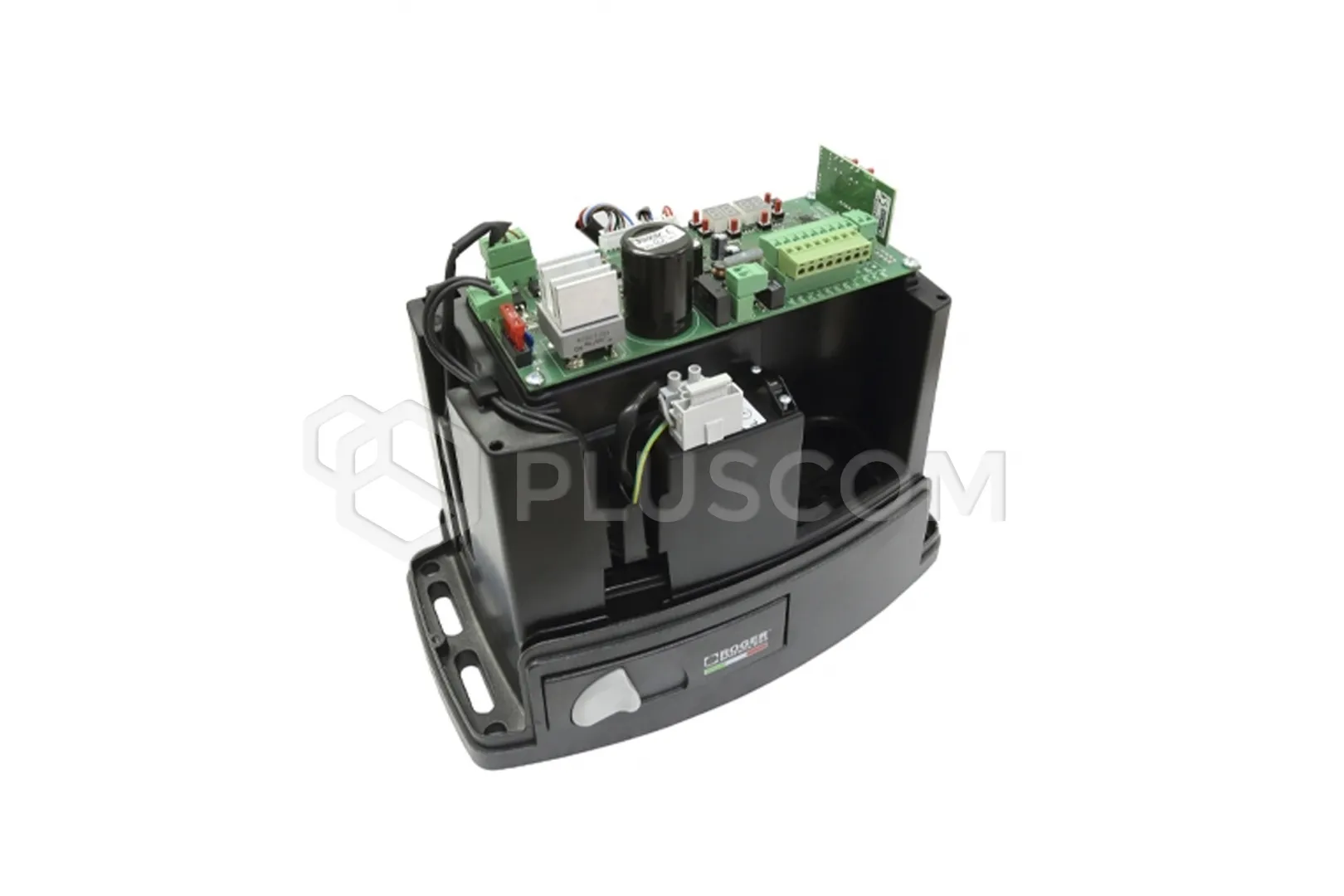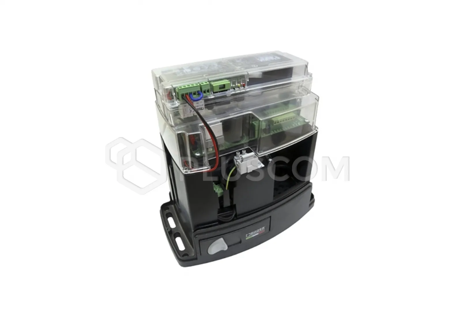 Napęd z silnikiem bezszczotkowym 24 V, do pracy bardzo intensywnej, do bram przesuwnych o max ciężarze 800 kg, z enkoderem absolutnym, wbudowaną centralą B70/1DC i wyłącznikami magnetycznymi oraz podstawą i śrubami do montażu.