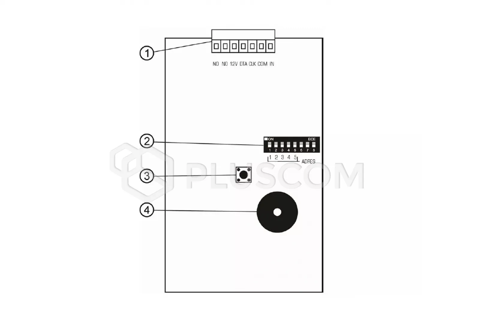 2. zespół mikroprzełączników typu DIP-switch służących do ustalenia indywidualnego adresu klawiatury.