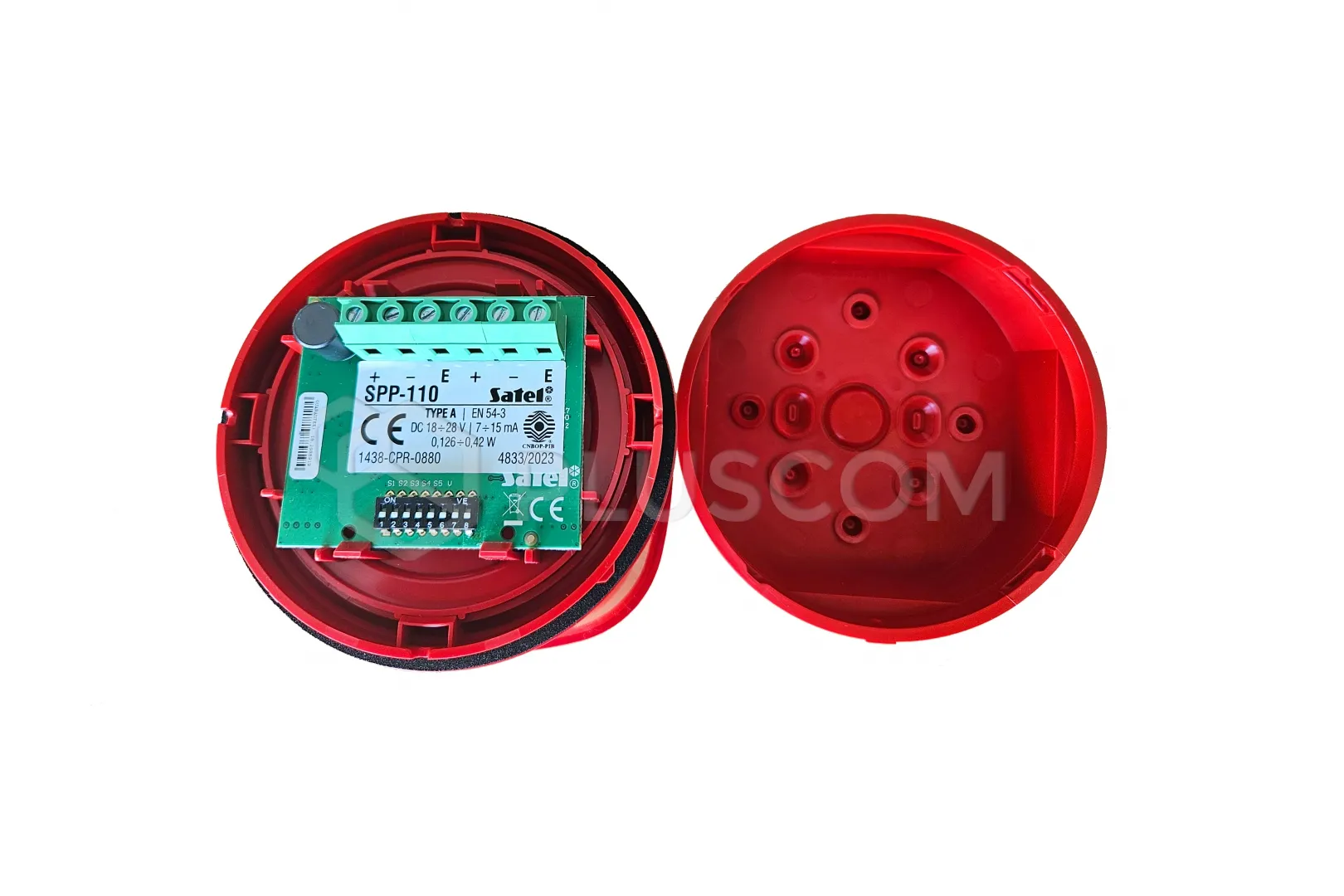 Satel SPP-110 Konwencjonalny sygnalizator akustyczny pożarowy wewnętrzny z niską podstawą, czerwony