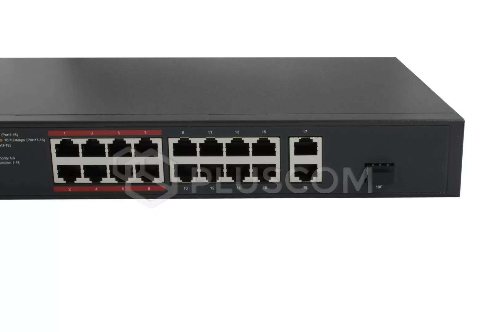 - 16 portów RJ45 10/100 Mb/s PoE+ (zgodność ze standardami